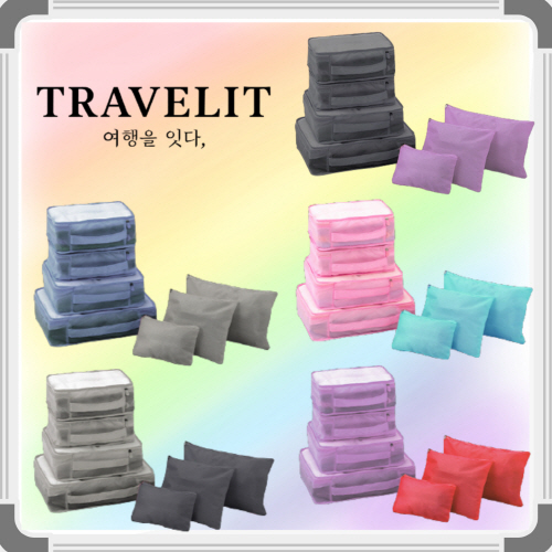 [트래블잇] 내맘대로 8컬러 믹스 여행용파우치 7종세트 캐리어정리 실속구성7P