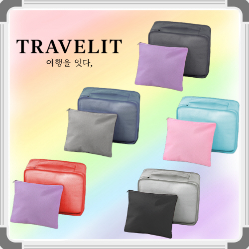 [트래블잇] 내맘대로 8컬러 믹스 여행용파우치 2종세트 캐리어정리 실속구성 2P