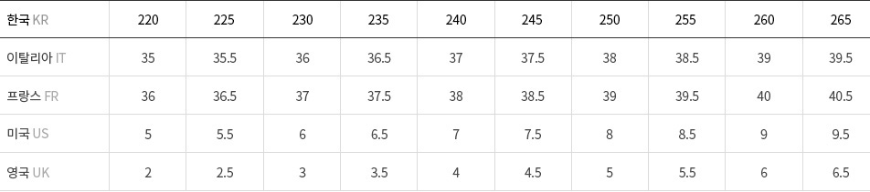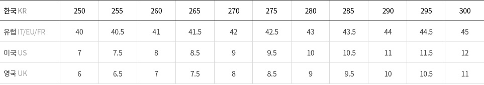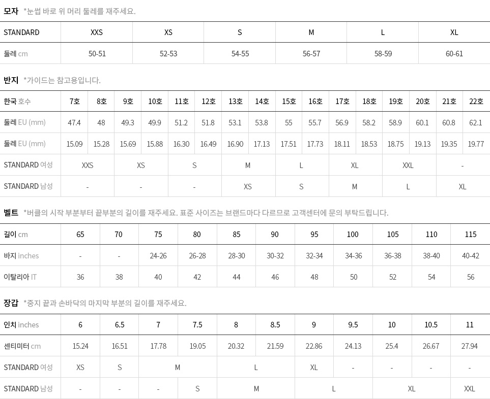 차트는 참고용이며, 브랜드와 스타일에 따라 차이가 있음을 유의하시기 바랍니다. 정확한 정보를 얻고 싶으신 경우 고객센터로 문의바랍니다.